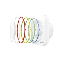 Уникальная конструкция лицевой панели с двумя положениями обтекателя для регулировки потока воздуха. Укороченный фланец позволяет монтировать вентилятор, когда есть ограничения по глубине вентиляционной шахты, а также в потолок (c опцией BB). Пять сменных декоративных колец в комплекте. Уровень защиты – IP24.